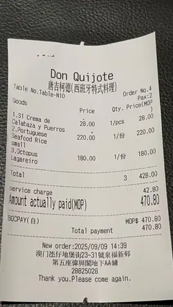 西班牙同葡萄牙既菜式一次過滿足晒 味道正宗得嚟又有創意💡🏡呢間餐廳環境又有異國風情 侍應既服務又有禮貌🧑🍳 成餐飯既體驗真係心情都靚晒好開心ar💖! 今次同男朋友試食左3種人氣餐點 全部都好推薦🤤🥩 Solomillo al Queso Azul(藍芝士牛柳,七成熟)牛柳切得厚身💪,外層微焦🔥,內裡粉嫩多汁💧,七成熟啱啱好👌。藍芝士🧀香濃鹹香,融化喺牛肉上面,味道層次豐富🎯,入口即溶,夠晒滋味😋!🍗 Roasted Chicken(烤雞)雞皮烤到金黃香脆✨,肉質嫩滑唔乾柴👍,香料滲入肉裡🌿,每啖都夠味💥。配菜清新🥒🍅,擺盤整齊📸,睇得又食得,係一款穩陣又滿足嘅主菜✅。🥤 Pasion Fruit(百香果飲品)飲品色澤鮮黃🍋,酸甜平衡⚖️,入口清爽💨,果香自然唔造作🌼。冰凍上枱🧊,啱晒配肉類菜式🥩🍗,飲完即刻醒神⚡,係炎熱天氣嘅完美配搭🌞!📍唐吉柯德氹仔舊城區地堡街23-31號泉福新邨第二期第5座偉興閣地下AA舖…查看更多