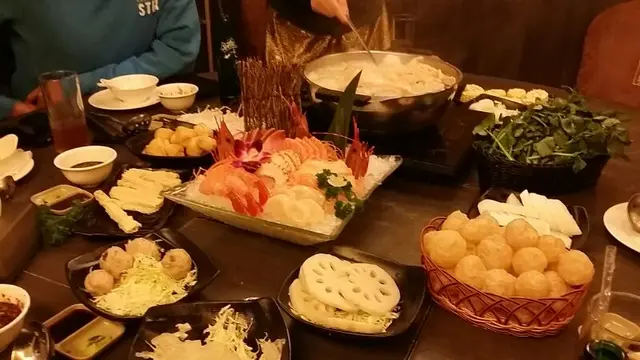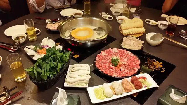 首先頭盤,一人一隻生蠔,好肥美!正呀!之後個鍋滾埋就開餐!我地仲叫左手打墨魚丸,牛,豚肉,炸松露餃etc.個鍋愈食愈濃! 入面啲鮮菇好入味呀!超正!