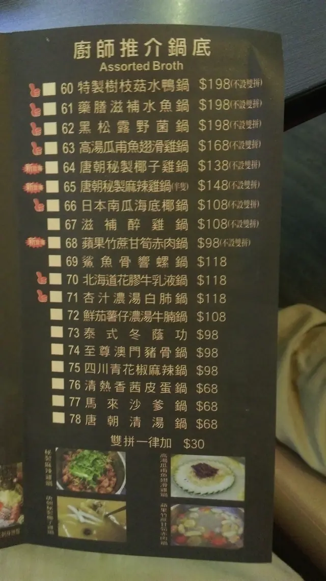 呢排涼左小小就好想打邊爐!同男友原本諗住食厚xx,不過full左要等...行行下就去左唐朝!見到門口寫住黑松湯底~未食過就試下啦!入到去...可能閒日關係,好少人,所以坐得好舒服!
