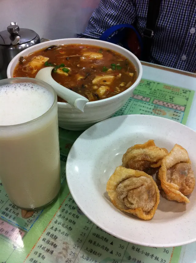而食已經炆炆地,昨天下雨,坐都未坐定,吹落ORDER,我地(三人)一咸豆漿,一甜豆漿,一酸辣湯,一牛肉餅,一"痴''飯,一薄餅。重點係酸辣湯我們不知有個大細碗之分,頂,我們三人一人一碗野,個阿姐問都唔問就落大碗酸辣湯,我爸問呢個大定細個阿姐走開,個老闆話係大,細既$20, 跟老爸就話算LA,多個十蚊,個人覺得"矛",做生意做到甘,問題係食唔晒,好明顯個阿姐係知LAW。我好努力食左半碗,酸辣湯味道很差,只有酸味,沒有 其他味道。薄餅好CHEWING,有很重蔥味,堅好味。外皮脆,沒有汁的牛肉餅"痴''飯一般,油炸鬼唔夠,飯有D鬆散。呢道有什麼名人賣廣告都是白費,食物幾好,服務做生意態度差,真是令人不想再去。…查看更多