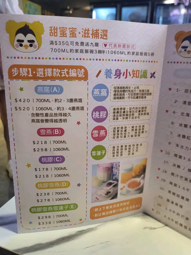 ⭕呢間舖頭我諗唔使多講大家都一定識😚佢哋嘅雪燕燕窩係真係好正✨👍絕對對得住個價錢💓👏我同屋企人都超級鍾意食🌟❤️🔻椰香雪燕奶凍 $68奶凍分咗兩層,面頭係佈滿咗椰香雪燕,淨係扭開個蓋都聞到好濃郁嘅椰香味🥥食之前要將個匙羹插到底, 之後就攪勻佢哋嚟食,跟住就會令到啲雪燕同埋果凍可以均勻黐埋一齊👍🔻3.6牛奶木瓜雪燕奶凍 $68哩個奶凍都一樣,一樣分咗兩層,面頭係佈滿咗木瓜雪😙同椰香雪燕奶凍既口味一樣不相伯仲👍👍👍份量超級足,食完已經好飽👏👏🔻茉莉花凍椰青雪燕飲 $58飲落好清新,仲有好多茉莉花果凍,入口好q彈😚同埋都有大大嚿嘅椰青,非常足料🤩🔻蒜香金蠔🔻蒜辣雞翼尖 $48佢地係冷凍咗一pack咁,放係冰格急凍嘅話,可以放到三個月💓👏超級方便,鍾意食嘅話,可以買定多少少放喺個雪櫃度✨邊有屋企唔係好夠餸,可以隨時加料🤩每包份量都唔少,絕對可以當一餐餸👏👏👏加熱就食得🔻特濃3.6牛乳奶凍每啖都係好濃既牛乳味,奶凍好滑😚👍真係好快就食完一個😙❤️食完一個都令我有種意猶未盡嘅感覺😂…查看更多