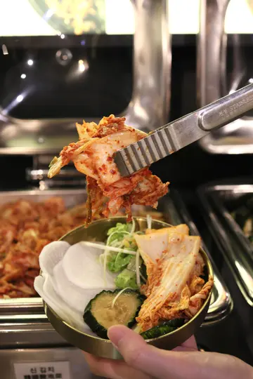 前菜可以自己去拎,任装。特别要讲讲佢嘅泡菜,由于我本人比较钟意食偏甜嘅泡菜,呢间嘅泡菜就做得好好!味道甜甜地,而且好入味,唔会太酸!😆1️⃣牛舌、雪花肉呢两款肉类都好好味!佢嘅腌料好香有少少甜甜地又有啲咸咸地,味道适中,烧完好入味!2️⃣水冷面水冷面嘅嘅质感软硬适中,好有弹性!而汤底味道都啱啱好,唔会太酸😋3️⃣泡菜煎饼颇失望!里面嘅泡菜好酸,而且煎饼太腍,我同男朋友食咗一半已经食唔到落去🥹🥹至于服务态度,店员服务好周到,佢见到我哋拎住大袋放唔落凳底,即刻拎多张凳俾我哋摆袋😆