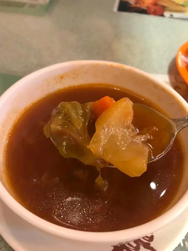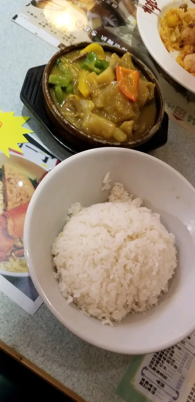 好野,今晚個衰佬終於有時間同我食飯啦! XD,雖則就唔係話出去食,但都可以撐下台腳啊去左屋企附近間喜喜冰室,其實淘大至得寶成條街都有好多間冰室同茶餐廳,尤其間龍x超多人,不過好無食就哼哼la! 喜喜都幾有特色,裝修好有HK 50-60年代既懷舊設計!我就見左最愛既西炒飯食,不過呢度既西炒飯好特別,係用美極炒既,所以特別鮮味!另外仲可以加$8多個羅宋湯同菠蘿包,羅宋湯好夠酸又重牛味,雖則有少許鹹,但係都好夠味! 而菠蘿包都好大個啊,難得去到咁夜仲有脆薄薄既菠蘿包食,好好味呢!而個衰佬呢,就叫左個咖哩牛腩飯,男人既浪慢喎...見到兜牛腩果下,真係哇左聲: "咁多牛筋既...筋仲多過,正喎! 個衰佬食到lam晒俐添喎,事關佢最like牛筋喎!呢餐茶記雖然食既係普通野,不過味道好classic!查看更多