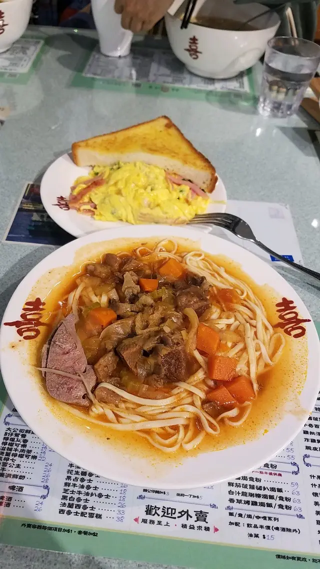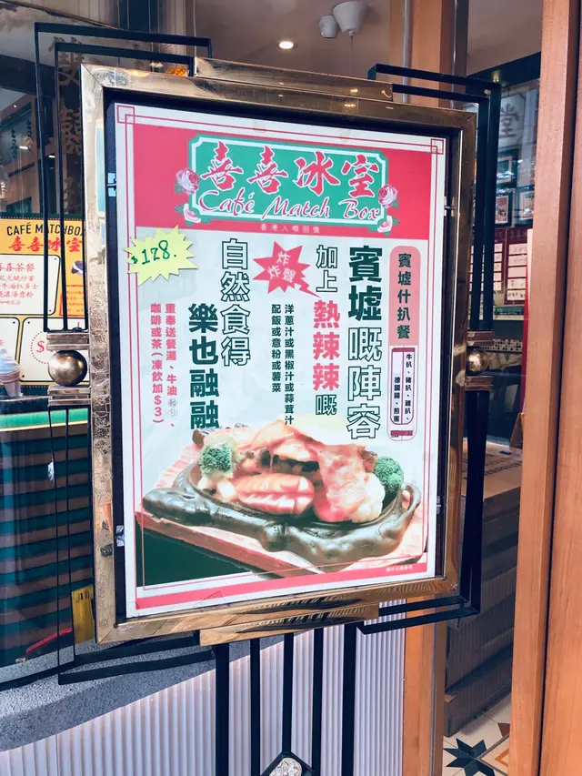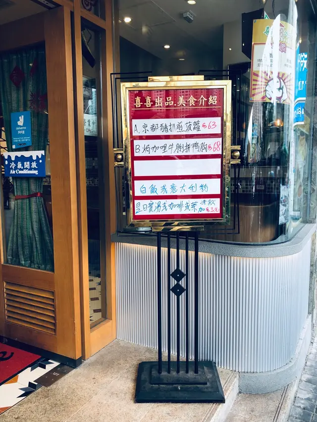喜喜冰室位置較接近牛頭角,門外的裝潢屬於比較古舊一點設計,好像70,80年代,平時都只是經過,今次才是第一次到喜喜冰室食野。比起其他餐廳,11點半前仍有早餐是吸引,再加上沒人在餐廳外待位,當下吸引了我。餐廳內都尚算大,呈L型,可能外面下大雨,都頗多人進食,要等了一會才有位,雖然有張大圓枱,但店員都有禮貌請我稍等,並說明若坐大枱,好大機會之後需要轉座位。等了不夠5分鐘就有位,趕緊望望餐牌。餐牌好風趣,有型男索女餐,很搞笑。早餐是正常大路的選擇,我點了一碗漢堡扒米粉、熱檸水。2塊漢堡扒,湯內有少少栗米,感覺不會太清,但看著就覺得不會夠飽及不豐富,上枱時覺得$29好像不太划算的樣子。之後再加了$9,要火腿奄列+牛油多士。火腿奄列不過不失,火腿絲略少,但蛋煎得不錯。牛油多士大推介!超好食,並不是多士爐整出來,似是煎出來,除了牛油,感覺似芝士味,外脆內軟,非常香口,在整個早餐中非常搶鏡!若只單點一碗米粉是絕對不飽,建議加配會比較飽肚。查看更多