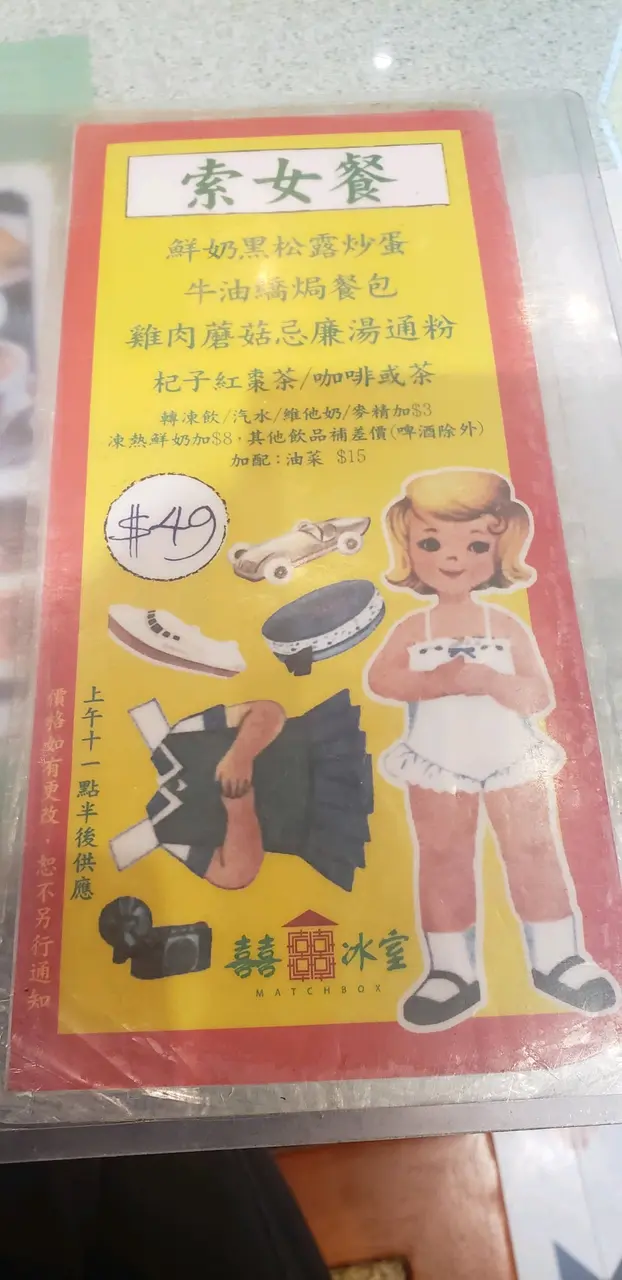充滿懷舊裝飾的食店, 牆壁滿是 五六十年代 嘅圖片, 餐牌用左當時好興嘅圖片, 擺設亦都有舊式嘅打字機同埋衣車食物方面就認真麻麻喇, 奶茶紅豆冰太過甜,冇咗奶茶味, 豬潤通粉D豬潤好嚡。型男餐, 牛腩通粉啲牛腩都算啦林, 不過就好細粒,炒滑蛋都ok ,多士都唔錯。查看更多