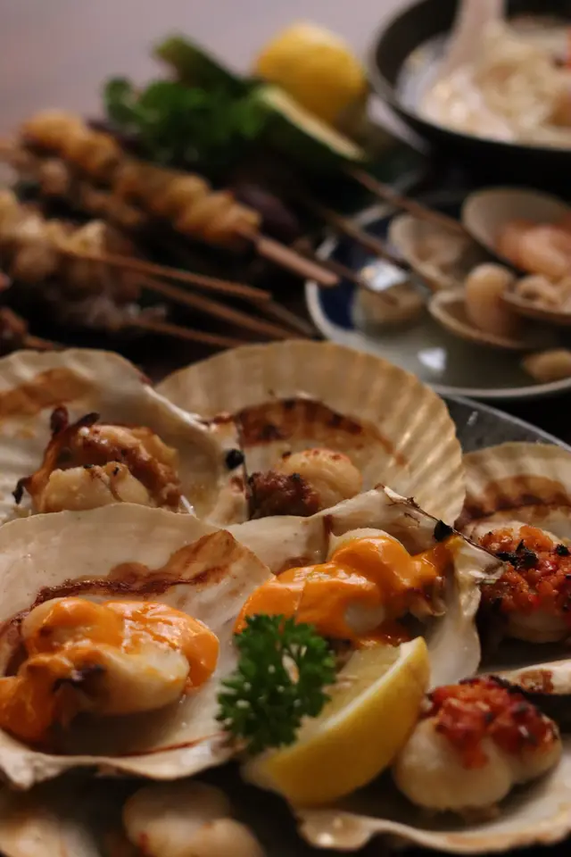 🦪前菜 時令海鮮湯、味淋魚干 🦪喜多嬉懷石八品 🦪任食喜多嬉生蠔(包括焗蠔、焗帆立貝) [可選 原味/蒜味/辣蒜味/芝士醬] 🦪任食串燒 🦪松葉蟹五島手延烏冬 🦪任飲汽水 & 梳打特飲