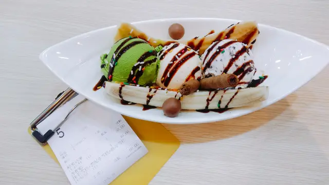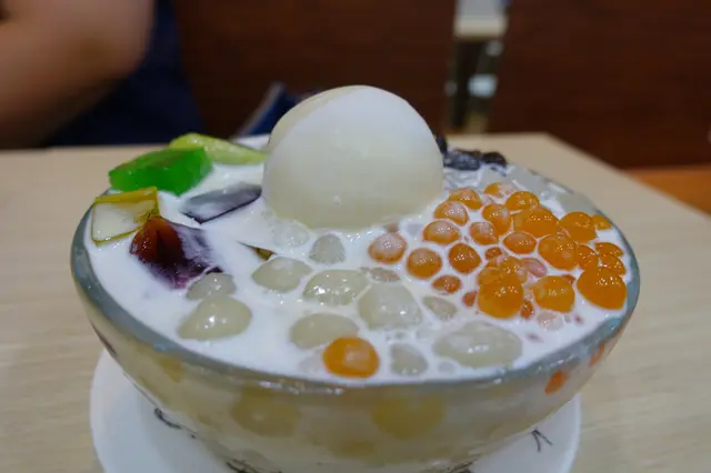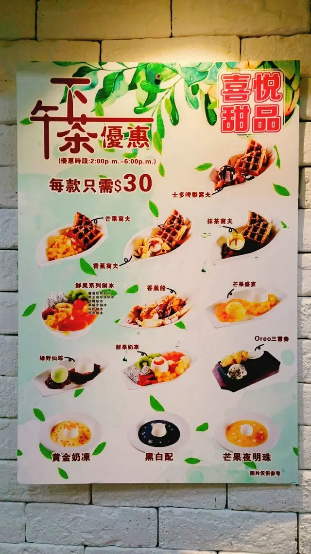 行街攰攰地, 想搵甜品店坐低慢慢食, 遇上有優惠, 很抵食!下午茶優惠有很多款, 比原價平很多!我決定選擇較健康, 以水果為主的生果奶凍。老公就選喜歡的雪糕香蕉船。奶凍甜度適中, 彈彈下, 奶味足夠, 生果種類算多, 十分超值。香蕉船有三球雪糕, 揀左綠茶, 曲奇, 云尼拿, 仲有其他款任揀, 下次會試榴槤! 配料有朱古力脆脆及麥提沙, 食完很滿足, 感到小店的盛意。小店另提供小食, 鄰座客人點了鹽水雞腳, 吃得津津有味, 一碟足足有3大隻, 亦很經濟18元一碟! 仲見鄰坐點了雪糕窩夫, 老公話下次留肚會試。店舖細細, 因非位處大街, 無需等位, 我決定下次一定再會光顧。…查看更多