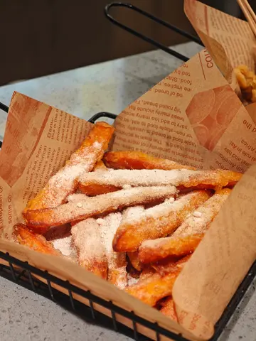 虽然小店唔大,类似Bar台形式咁座位唔多,但D甜品居然劲有惊喜。趣多多巧克力梳乎厘 $58所有梳乎厘都系即叫即整,个蛋白霜打起打得好立体好靓好棉密,好欣赏咁睇住老细由零整起成个甜品出黎。两层嘅梳乎厘叠起上面仲加左层好香嘅忌廉同朱古力粉同朱古力粒。食起上黎好软熟好香蛋味之余仲好香朱古力味,成个梳乎厘整体都满分无咩可以挑剔,好正牛乳雪花冰 $68雪花冰都好夸张,上面砌左球雪糕,放左Oreo,忌廉,乳酪同朱古力饼碎。成个口感同味道系好丰富,雪花冰够棉密,牛奶味道好香,真系重成本落足牛奶去整,价钱以甜品黎讲系非常之抵食藤椒小酥肉 $30好香好好食又唔油腻,份量都几多,加左D五香辣粉上去几好食芋泥香酥鸭 $30几特别,细细块一块咬开真系芋泥包住D鸭肉,食落好脆身,鸭肉又好香甘梅粉地瓜条 $28炸得够脆,洒左D梅粉酸酸地又几唔错查看更多