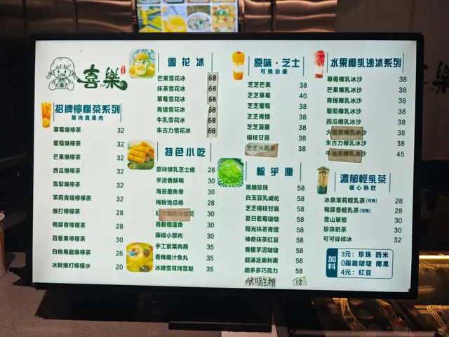 見元朗谷友推介喜樂個梳乎厘班戟,是晚特登嚟試下😋小店主推梳乎厘同雪花冰,仲有多款飲品同鹹甜小食,梳乎厘價錢58蚊起有兩件,都幾親民喎。⭐脆多多朱古力梳乎厘自己點咗朱古力口味嘅梳乎厘,雖然佢要脆多多,但係朱古力粉上面係淋咗黑糖珍珠,哈哈,開頭遠睇我以為係朱古力豆嚟㗎😆美麗的誤會。梳乎厘軟綿綿有蛋香,朱古力粉味濃微苦,正好中和返珍珠嘅甜味👍⭐超滿足奧利奧梳乎厘朋友點嘅oreo口味,上枱時已經有塌塌地嘅跡象😂oreo粉下得好多,整體嚟講微甜,係好食喎!⭐原味煉乳芝士條重點咗份炸芝士條,芝士味唔算好重,但炸得外脆內軟口感好正,點埋個煉奶甜甜鹹鹹咁又真係幾夾幾好食喎。⭐芝芝青提芝士奶蓋好厚有質感,有芝味又夠香滑,正!⭐雪山單樅個名咁詩情畫意但其實即係奶綠,個綠茶味幾幽香,要咗少少甜就啱啱好,茶香奶滑👍梳乎厘有水準值得一試,店內有少許座位可以堂食,梳乎厘嘛~梗係即整即食最正㗎啦。…查看更多