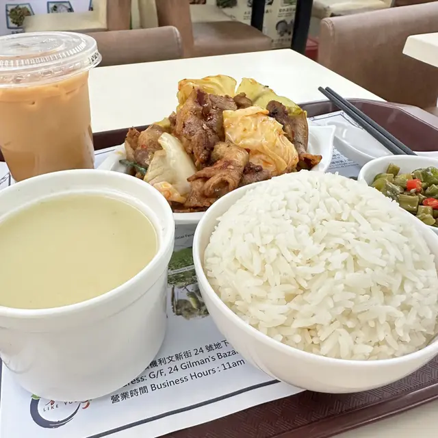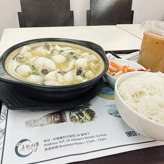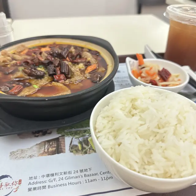 我們一行三人在中環的「喜歡你」餐廳享用了川菜,整體感覺相當不錯。我們點了酸辣雞雜飯、回鍋肉飯和麻婆豆腐飯。每個餐都跟開胃前菜、中湯及飲品,非常豐富。酸辣雞雜飯的味道非常惹味,雞肉鮮嫩,酸辣的醬汁讓人食慾大開;回鍋肉飯的肉質滑嫩,搭配香濃的豆瓣醬,味道很對口;麻婆豆腐飯則麻辣適中,豆腐綿滑,吃得非常過癮。中湯清淡可口,剛好平衡了我們的口味,再飲杯透心涼的飲品,滿足晒!整體來說,「喜歡你」的川菜讓我們感受到不一樣的風味,非常滿意!期待下次再來試其他菜式。…查看更多