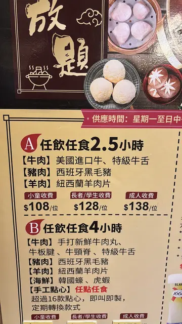 点心好吃,鸡煲也惹味,但火锅可以不吃。姐姐服务态度好尤其是负责带位的姐姐👍但经理就唔多友善希望改善下否则感觉赶客😂 下次去会只吃点心试多些其他款式😍 炸物同蒸点都好吃火锅料的质素比较一般,其实用个火锅鸡煲锅炒熟其他料如虾仲美味以 二百元任食点心,火锅四小时其实都算扺,当然食物质素不能要求太高,所以下次去宁愿只单叫点心更化算羊锅就一般,羊肉都有味但个汁唔够浓,都叫做有齐马蹄,冬菇,萝卜等配料,但不及鸡锅好吃另外点心有外卖