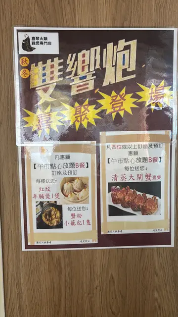 任食大闸蟹无限时放题 喜聚火锅鸡煲专门店 https://s.openrice.com/QrLT0InnV00
