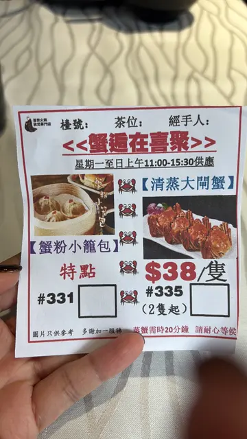 我们一行四人由5点吃到12点,所谓大闸蟹放题,每次都要等大约40分钟才给我们四只,伙计话厨房只有一个蒸笼要排队蒸,所以最后我们只系食得八只,每人$500食得八只,真系有点过分,其他所谓火锅海鲜垃圾不吃也罢,唔怪得上到去就算话无限时都只有20人不到,伏咗奉劝其他人不要上当😢