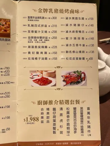 品赏香港80年代鱼翅捞饭的气焰由门口位开始,驾驶去到茂萝街停车场满咗,表位见到有车出,代客泊排骨哥即刻放低雪糕筒,话佢系代客泊车唔俾我泊,政府表位㖞,佢叫我去问伟哥,我去喜万年食饭㖞!得,放低架车代泊收$100,违法霸位仲响朵咁怀旧!好,我泊街算!星期日餐厅晚市得几枱熟客,我们2人点了粟米斑块(炸得好但鱼及粟米汁无调味)、半份脆皮鸡(普通但好食)、半份盐烧牛脷(非常出色),埋单$927,服务还好,但可能我们消费不高,熟客有的糖水花生冇我哋份… 整体饮食体验经典怀旧,好耐都冇试过,食老本餐厅建议大家有得好食…查看更多