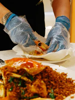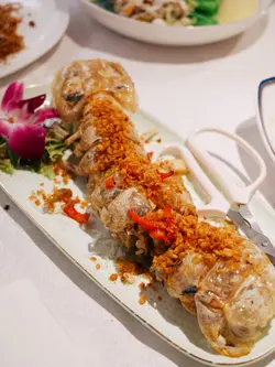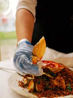 这间餐厅非常地道及有风味~店员有礼,而且环境又大又干净~仲有好多游客及本地客光顾的~有天来吃一顿美味海鲜餐。这间餐厅的蟹十分出名。看到每一台食客都必会点蟹。蟹都有多种不同烹调煮法,有避风塘蟹、姜葱炒蟹、蛋白花雕蒸蟹、沙茶粉丝肉蟹煲、黄金蟹等等,蟹仲可以自选大细。今天叫了一只细细的黄金蟹~卖相相当吸引,金黄色的外皮,香脆惹味,咸蛋味充足。虽然细份量的蟹,但是蟹都非常大只。餐厅已把蟹斩成了一件件方便食用,而且还有店员会帮忙剥蟹,真的是贴心服务,这样不用花气力和弄污糟双手都能吃到啖啖蟹肉。黄金蟹外皮惹味,中间的蟹肉鲜甜无比啖喔肉超满足。十分喜欢这餐厅的蟹宴。除了蟹之外,我们还点了椒盐富贵虾,富贵的濑尿虾大大只相当吸引,我都是第一次吃那么大个子的濑尿虾,当我在担心不知道怎样剥壳,店员提供贴心服务会把虾壳清理好,然后便可以啖啖肉吃。濑尿虾鲜甜无比,肉质厚实爽口弹牙,啖啖肉超丰富,令人十分难忘的巨大濑尿虾。招牌蟹油炒面,看似平平无奇的炒面,当把炒面放入口中,蟹味香浓,炒面十分惹味,令人一试便爱上,而且炒面份量也很多,非常抵吃。油盐水浸蚬,看到超多蚬~蚬肉鲜甜,而且仲有粉丝,粉丝吸入了鲜甜蚬肉味道,仲有鲜甜的汤汁,粉丝非常可口美味。吃饱饱丰富晚餐还有甜点赠送,是日提供了番薯糖水。番薯糖水甜度适中,番薯软糯~非常滋润清甜~正。下次又可以再约朋友来吃~试一试其他菜式~…查看更多