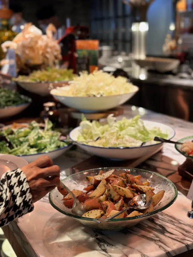 因為賭波而開左個馬會戶口咁佢地耐唔耐都會寄d垃圾過黎有一日就收到個優惠係係馬場食半自助餐有買二送二既優惠之前有睇過L佛見到間餐廳好似都唔錯適逢果排老母生日就係佢生日果個跑馬日去左馬場而食半自助餐係包埋入場既就真係獻出左人生既第一次個半自助餐餐廳叫做喜馬當先逢賽馬日開放沙田馬場大部份賽馬日都係星期六日或者公眾假期既日馬咁即係同普遍既sunday brunch差唔多都算係間熱門餐廳網上訂座會開放未來一個月時間咁馬會封優惠信就會比埋網上訂座個code揀好位之後入code就會得到半價優惠book檯同時就要比埋錢今年二月既價錢係395蚊已經包晒加一即係四人同行每人兩舊水都唔洗就可以食飯連入場睇馬抵L到喊座位平面圖book檯果時就會見到熱門座位即係窗口位應該就好撚book至少我步住開放個日子都已經全部唔比book應該係預留左比vip日場食物供應時間由十二點至三點不過只要係當日賽事期間就可以繼續坐到完場舒舒服服唔想曬太陽喜馬當先係二樓見到門口企左好多人當堂嚇一嚇呢度就唔係酒店餐廳不過環境都OK既呢個L型梳化位每張坐兩個人我就book呢兩張即係U型坐四個人幾大張舒服得到貼紙四張可能曾經試過有人白撞黎食野除左可以出露台睇馬座位頭頂都有電視機同賠率雖然有d遠唔太睇到另外仲有幾個投注counter淨係坐係度食飯都可以做到好多野仲有d圓檯擺位都幾密一開波就個個湧晒出去拎野食咁呢間餐廳就只得三個自助區面向樓梯右手面係熟食區但其實都只係得餐湯同奄列兩個選擇而樓梯左手面就擺左沙律凍肉同埋刺身無凍海鮮亦都再無其他熱盤淨番最後就係甜品區其實佢地出面食物算係偏少始終唔係酒店自助餐食物範圍都唔大所以一開始奄列同刺身兩條龍真係排到好長好長唔想排隊既話就只可以拎一樣野就係甜品堅係第一次去食自助餐係一開始係拎甜品食維生甜品選擇想比起前菜果類都叫做比較多又真係好多人同我一樣諗法始終呢邊唔洗排隊嘛賣樣都味道都叫做不過不失咁等等下出面人龍叫做正常番d都可以拎番下野食隻奄列樣唔差入面都好足料雜菜牛肉湯有些少似港式羅宋湯但味道又幾唔錯飲左兩碗咁飲品方法係可以無限refill果汁既自助餐三點會停止供應果汁就會係一點半停止refill而且職員亦唔太會主動過黎斟都要同佢地單聲先有另外仲有一杯自選既tea or coffee都係正常飲品去到後尾都已經無乜人拎刺身五款刺身三文魚比較厚切唔錯同埋𩶘魚都OK其他就同普通自助餐差唔多但都唔會話未解凍水平沙律凍肉芝士食到咁上下就會有職員同你落埋個主菜問你想幾時上檯面只有qr code餐牌五款入面得兩款係唔洗補錢就豬柳同齋每樣各叫左兩份不過件豬柳係比想像中有驚喜既因為佢唔係乾爭爭咁一塊野而係腸既形態入面仲加左一層蘋果洋葱麵包布甸食落有d似巨大芝士腸既口感幾有層次另一個齋係雜菇焗栗米餅有奶凍口感即係唔算話好好味但又幾有心思整左d比較特別既花款出黎甜品仲有杯裝瑞士雪糕廚師筆出黎既麵包布甸水果洗手間就係樓梯上面最後成個場最大賣點當然就係佢地個露台可以好似vip就咁行出去就睇到馬普通公眾席就係下面仲有人現場唱下歌夠鐘就行出去跑完又可以番埋位繼續食又有私人投注站即係雖然野食選擇都幾少不過呢個價又食又睇馬真係無野好投訴同埋都見到唔少鬼佬入黎又食又玩馬場應該都算係唔錯既旅遊景點仲有個預約小遊戲係出去出面張檯玩既有場地同騎師馬匹既少量講解然後需要用apps投註一場10蚊都得就會得到馬岡一隻有白色同啡色可以揀…查看更多