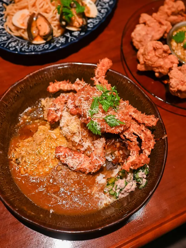 今日同老公去一田買嘢,買完都夠鐘食晚飯。之前黎過,每次經過呢間日式洋食店,都有好多人排隊。時間尚早,暫未有人排隊,我哋就即刻入去。餐廳日和式風格,木系設計,感覺優雅。環境乾淨整齊,坐位寬闊,幾舒服。呢期餐廳做緊蟹の祭典推廣,我哋就响蟹仔menu度揀左兩款主食同飲品,另外小食同甜品各一。軟殼蟹與濃厚蟹皇膏黃咖喱飯 (刨芝士):咖喱味道偏甜,蟹膏有一絲絲真蟹肉,醬汁濃厚。軟殼蟹炸得酥脆,唔油膩,配飯幾惹味。另外刨芝士加強左整體口感,啱晒鐘意重口味嘅客人。蟹旨膏醬唐揚炸雞:炸雞外皮香脆,肉質嫩滑,juicy。蟹膏醬味濃,味道鹹香,同雞肉都幾夾,幾有特色。屋台風蒜香貝殼意粉:海鮮有青口同蜆,蒜香味較突出,意粉掛汁,整體味道唔錯。完熟南瓜濃香芝士蛋糕:蛋糕質地細滑,南瓜味自然,甜度適中。芝士味唔算太重,整體口感平衡,幾好。夏祭金魚梳打:打卡之選,飲品外觀吸引,金魚造型嘅軟糖幾得意。柿子香露:味道清甜,口感滑順清爽,去油膩啱晒。值得一提,而加做緊推廣《清涼一夏. 西瓜幸運祭》。即日起,消費滿$200,即可有夾西瓜機會!消費滿$400,就有2次機會。驚喜獎賞有三個,包括「原個西瓜飲一客」優惠券(即時享用,冰涼暢快!)、減壓西瓜 & 自選蛋包飯優惠券,最後係西瓜波 & 自選小食優惠券。…查看更多