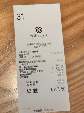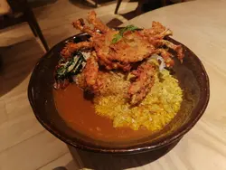 期待已久嘅食蟹季节又到了。今次去咗吃茶ちょうぼ,新菜单有蟹皇膏、蟹旨膏加入菜式,唔使”郁”手都有啖啖鲜甜蟹肉蟹膏品尝!🦀极强势!软壳蟹与浓厚蟹皇膏黄咖喱饭软壳蟹酥脆内嫩,易咬开!蟹肉细致鲜甜,无腥味。日式咖喱甘甜,今次仲加浓厚蟹皇膏,搅拌后超搭配!甜甘香,两样气味都特显!啖啖蟹嘅精华!🐔蟹旨膏酱唐扬炸鸡一层薄薄嘅面粉,香口薄脆,鸡肉弹牙爽口又多汁,唐扬炸鸡松脆无油腻感,鸡皮没有半点油脂,大啖食真系有啲罪恶感!而最邪恶系蟹旨膏酱,金黄色仲有粒粒蟹膏,甘香又鲜味,忍唔住食劲多酱,两样配搭相当有新鲜感!🍝屋台风蒜香贝壳意粉面条烟韧适中,保留口感!蒜香🧄惹味,加上沙白及青口,海鲜鲜甜与蒜香!🎃 完熟南瓜!浓香芝士蛋糕南瓜清甜,香气独特!芝士蛋糕顺滑,唔太甜配上一口南瓜两种口味仲好夹,而且口感好轻盈,相信食完饭食都唔会太heavy! 🎐夏祭金鱼梳打天蓝色嘅梳打,系日系波子汽水味,加上精致透彻嘅金鱼造型啫喱糖,透心凉嘅感觉,有捉紧夏天嘅尾巴嘅感觉!🧡柿子香露酸甜嘅口味又带啖啖柿子嘅味道,而且仲有柿子肉,虽然第一啖未必一饮就觉得系柿子,但香味慢慢透出来,越嚟越香!…查看更多