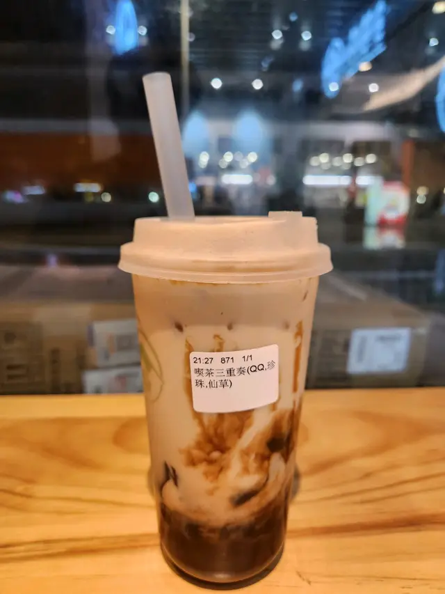 晚餐冇叫飲品,行去新開不久的茶店試下。叫咗一杯三重奏(有QQ,仙草和珍珠),茶味算可以, 感覺略甜,或許自己應該叫少甜才對。晚上環境很舒適,一邊聽歌,一邊飲嘢,特別坐響對住地鐵站嘅一排高櫈,好有旅行feel查看更多