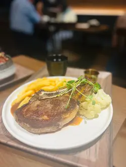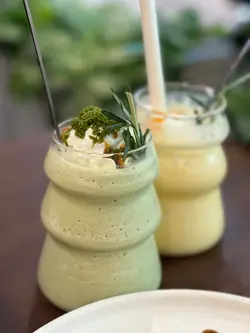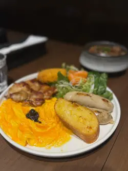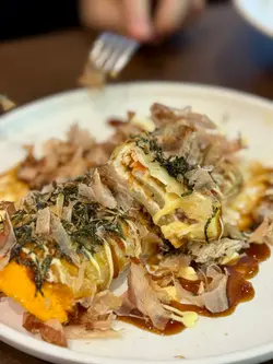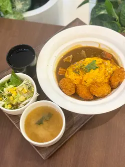 今次到荃湾逛街,逛街前就找了一间甜品很吸引的餐厅去吃午餐,位于海之恋商场内新开的〔喰屋〕,邻近荃湾西港铁站,地点非常方便,餐厅装修以日式简约木系风格为主,而店内亦主打日式洋食菜式,有蛋包饭、炖饭、薄饼、意粉、咖啡及甜品等。【宇治金时麻薯梳乎厘班戟配抹茶雪糕】(HK$118)餐厅人气甜品梳乎厘,两层梳乎厘加上面层的麻薯及抹茶粉,入口外层麻薯片烟韧内里松软,伴碟有红豆及抹茶雪糕,加上宇治抹茶酱,味道很不错又不算太甜腻,而且雪糕入口香滑,抹茶味道很浓郁,味道层次丰富,满足了我这个抹茶控。【极上芝士牛肉汉堡蛋包饭】(HK$134)汉堡扒上有热溶的芝士,切开有热腾腾有肉汁,选了日式咖哩作酱汁,加上软滑蛋包饭,吃得饱之余又不会油腻。【黑松露野菌椰菜花奶油意式薯仔丸子(素)】(HK$132)每粒薯仔丸子都挂了不少黑松露野菌椰菜花奶油酱汁,丸子口感实在,口感烟韧。【Blue Cloudy】(跟餐半价HK$24)入口气泡感十足,杯上云朵棉花糖及底层渐变浅蓝色很吸睛,打卡一流又透心凉的饮品。【芒果益力多冰沙】(跟餐半价HK$26)入口有微碎冰粒,芒果及益力多味道清甜不腻,很耐喝又冰凉的一杯饮品。10月1日-10月7日消费满$300(以加一前计算)或以上可享有全单88折还有期间限定赠送了中秋节灯笼…查看更多