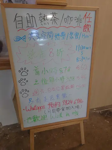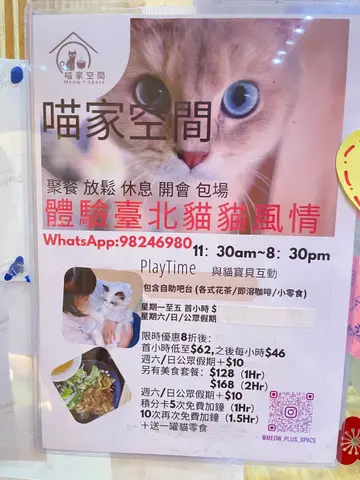 D职员又唔似系猫店主, 睇media话猫主应该系台湾人? 其实D猫只只都可爱, 好靓, 环境我觉得几舒服, 个D野食(我觉得)似系外卖order附近餐厅? 野食味道系几好食, 油左少少啦! 但系我觉得D职员对小朋友一D爱心都无, 令我非常反感! 建议唔好带小朋友去, 不过我唔带小朋友, 我都唔会再帮衬呢间野 …查看更多