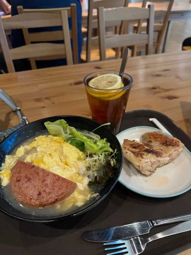 📍 Manna 觀塘翠屏道11號觀潮浸信會1樓 去附近嘅歷史檔案館路上經過依度,順便黎試下佢哋嘅早餐😋餐廳木系風格,環境舒服😌見到佢哋會請有需要人士工作,同埋有提供送飯上門服務。早餐去到朝早11點,午餐選擇豐富👍🏻除咗食正餐都係個適合黎飲杯咖啡坐喺度傾吓偈嘅地方☕️🍴雞扒米粉配餐肉炒蛋 凍檸茶 $45👉🏻所有營利都會用作區內關懷服務用途,提供就業空間及職業培訓予無餐飲業經驗或有需要朋友,社區關懷工作,包括派飯,探訪及義工服務🤍查看更多