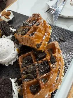 朋友话系沙田河畔花园最近开左间新甜品店🤩,即刻约埋一齐去试下先,甜品店装潢简约, 有不同的猫猫🐱布置, 很可爱喔!餐牌入面都有好多不同款式甜品和窝夫推介, 连小食都有提供, 真系照顾到不同客人喜好👏🏻🌽粟米浓汤拉丝麻糬窝夫 🧇$68这种窝夫味道很特别, 所以试下, 粟米浓汤分开装在猫形的小碟子上, 味道咸咸地好浓栗米味, 麻糬窝夫外脆内软, 又软糯、Q弹, 配搭粟米浓汤, 几得意, 另外食法可加上cream, 蜜糖, 雪糕 (拣左士多啤梨味), 口感和味道相当丰富, 份量都颇多, 一定食得满足!💜椰皇芋泥芋圆炖蛋白 (暖) $62很喜欢椰皇甜品, 呢款材料有独立一个椰皇炖鲜奶蛋白, 手工芋泥、大小芋圆和椰汁另外分开放置,先食炖蛋白, 好香滑, 跟住可以加埋芋泥和大小芋圆一齐食, 口感超弹又有好滑既口感, 食埋好饱, 哈哈💜三宝椰皇 (暖) $58叫左热的,包括有小丸子、芝麻汤圆、大粒芋圆, 椰皇清甜鲜香,融合了椰皇的天然甜味和蛋白的滑嫩口感, 再加埋小丸子和芋圆一齐食, 增加Q弹口感, 芝麻汤圆好香芝麻味, 种意呢个汤圆…查看更多