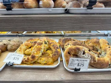 又系面包控扫货时间🍞之前每次都买bagel或布甸包,今次试其他一次过买咗8件产品返屋企🤭▶️ 明太子法包 ($20/2)除咗表面之外入面都有好多明太子粒㗎建议烘热食,会香脆好多 (就咁食会韧)似一个带明太子辛辣咸香嘅蒜蓉包🥖味道唔错,略嫌油咗啲▶️ 星野海苔盐可颂 ($20/2)唔好睇佢外貌平庸,好好食表面少少脆🥐内里有咬口带粗盐咸香之余又有海苔香味▶️ 咖啡朱古力松饼 ($9)闻落咖啡味出🍪配合朱古力碎粒口感唔错,唔会好干不过个人钟意比较似曲奇口感嘅scone▶️ 开心果烧饼 ($10)最后一个都俾我哋买到🥰虽然扁踢踢,但一搣就爆晒馅食到一粒粒开心果碎,同时有开心果酱,多重口感烧饼外皮非常烟靭有拉扯度,都算系mochi👍🏻胜在够薄▶️ 十胜红豆乳酪法包 ($25)全店最长最大嘅面包,拥有性感S型body😂未食已经见到粒粒十胜红豆🫘非常足料红豆粒食落带少少甜且起沙法包烘热后又脆又烟韧👍🏻入面仲有大量cream cheese!!▶️ 开心果流心挞 ($16x2)啲开心果酱满泻💚好重坚果香且厚杰,有啲似花生酱挞皮层层酥,每层薄到成张纸咁,因而咬落香脆▶️ 肉桂坚果包 ($16)面头坚果极足料,又杏仁又开心果又腰果🥜面包属软身type,偏向甜包type-不愧为香港最出名面包舖,永远走在面包界朝流尖端❤️🔥感觉入去任拣一款产品都会好食价钱亦相当亲民,一定会再帮衬 (已经第五次了🤭)…查看更多