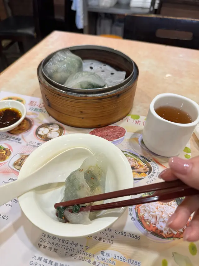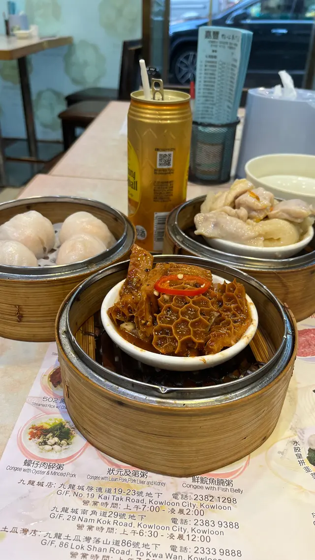 四月第二個星期四晚上,突然下雨。跟友人在九龍城做完養生蒸已經差不多十一點,在附近看看有沒有吃的沒關門,就讓我們找著這家點心。雖然時間有點晚,裡面食客不少,友人肚子很餓,所以很快就點了很多吃的。第一道是蝦餃皇,蝦餃很大顆,皮不算薄也不厚,不過略嫌太軟太黏,蝦肉混了一點點肥膏,是為可接受程度。當然少不了蟹子燒賣皇,也是大大一顆,味道不錯,為了增加彈牙口感也是混和了一點肥膏,份量比蝦餃多,個人不太喜歡這味道,燒賣蒸得稍為乾身,還以為在吃乾蒸燒賣。我點了沙嗲金錢肚,金錢肚不夠爽口,煮得太軟身,味道不錯,但如果沒有看菜單根本吃不太出來是沙嗲口味。再有我每次必點的魚肚滑雞扎,魚肚厚厚一塊,腐皮太乾身導致過硬。然後,居然在裡面給我發現芋頭,實在是太失望,根本不應該出現的東西,火腿沒多大味道,估計是給蒸出來了。最後是友人最愛吃的流沙奶皇包,說好的流沙是沒有的沒有流心效果之餘就像是奶皇醬一樣,流沙是會有點蛋黃的口感,這裡的是奶皇包,不能說是流沙。填飽肚子,相約下一次的飯局,各自回家。查看更多