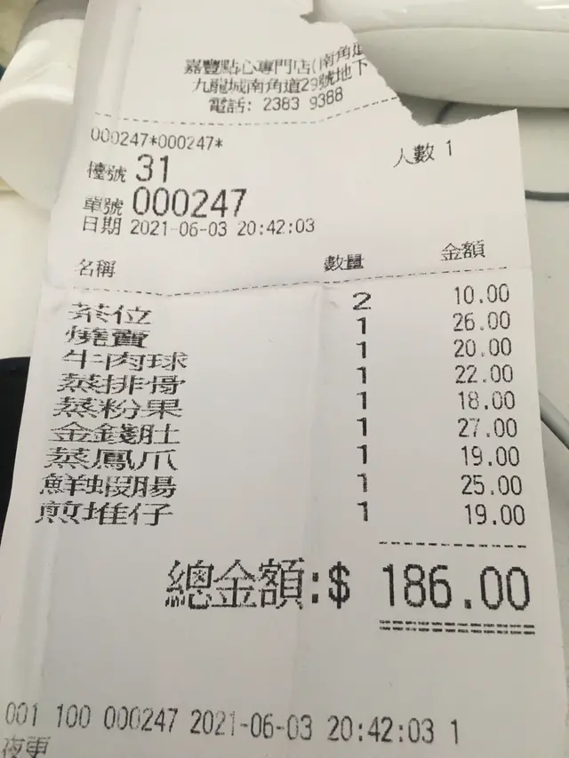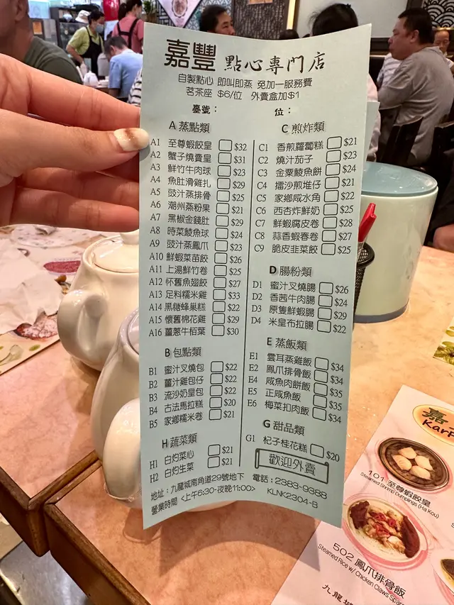呢晚突然想食點心,於是友人介紹啟德道嘉豐點心,於是就揸車去,去到九龍城,周街都泊滿車,想搵個位都難,於是乎都兜左幾個不同既圈,喺幾條街之隔又有間嘉豐,呢間望入去好似比較乾淨整齊,咁啱兜多陣就有路邊位,於是乎冒著會抄牌既風險,落車去食個快,2條友點左8款點心,所有野雖然唔係高質,但比起其他點心店黎講,真係已經唔錯,價錢一啲都唔貴,完全合理,最後埋單$186,抵食,食完極速去攞車,好彩最後都無食貴左啫。查看更多