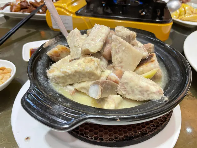 雖然鮮魷唔算多,但係性價比高,豆腐外脆內軟又滑甜梅菜扣肉煲 $ 88煲上或者可以保存温度,食起上嚟好味啲,不過呢道菜建議轉碟上。本身扣肉雖夠肥,但係肉位過熟偏柴,再煲上更似瘦肉。。。味道方面係正嘅,入晒味,煲底墊咗少量菜,等大家食得平衡健康啲,而且個汁浸住特別惹味