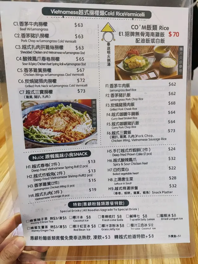 去灣仔開會諗住食越南菜,近近地係地鐵站附近就試呢間啦,小店地方不大,坐位有點焗促。到的時候已經是下午茶時段,點了一個生牛肉粉$49,河粉幼滑但湯底過鹹,生牛肉味道一般。朋友叫的是喇沙口味河粉(朋友埋單無特別留意,$55-58左右),入口覺得湯的溫度不夠熱,魚片還是凍的,連基本再灼一下上台給客人都沒有。食湯粉麵溫度很重要,最正常係2杯青檸梳打(越式特飲另+$8杯)。食完走出小店衣服還沾有一大陣油煙味,明顯抽風系統不足,希望小店改進,今時今日食物質素無競爭力,其他配套又無,只能做一次性生意,很難有回頭客。由於太普通無影相…查看更多