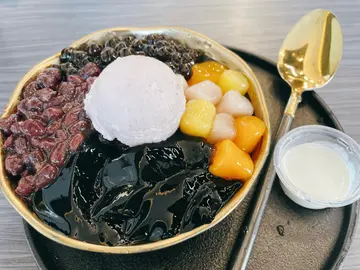 嚟到一间人气爆灯的台式冰品店,我点了份「双芋鲜草奶冻」。头先一入口,个芋丸同芋泥简直系芋头味嘅极致,芋味香浓得嚟又天然。蜜红豆食落彷佛在嘴里开Party,甜得嚟又唔腻。啱晒!话时话,个黑糖沙冰珍珠,弹牙嘅感觉正到不得了🤤,真系流口水!至于仙草,滑溜溜嘅口感加上一丝丝的草香,简直爽到漏!仲有个奶冻牛乳底,温润如丝,完美咁包装住所有材料。虽然价钱微辣,但系味道同享受都算物有所值。整体嚟讲,呢个拼盘系一个味道同口感嘅完美统一,令人忍唔回头再来!对于一个会食甜品既人黎讲,这间店无疑系一个难忘嘅糖水游乐园,而个「双芋鲜草奶冻」就系当中嘅超级明星啦!🌟👅🍨