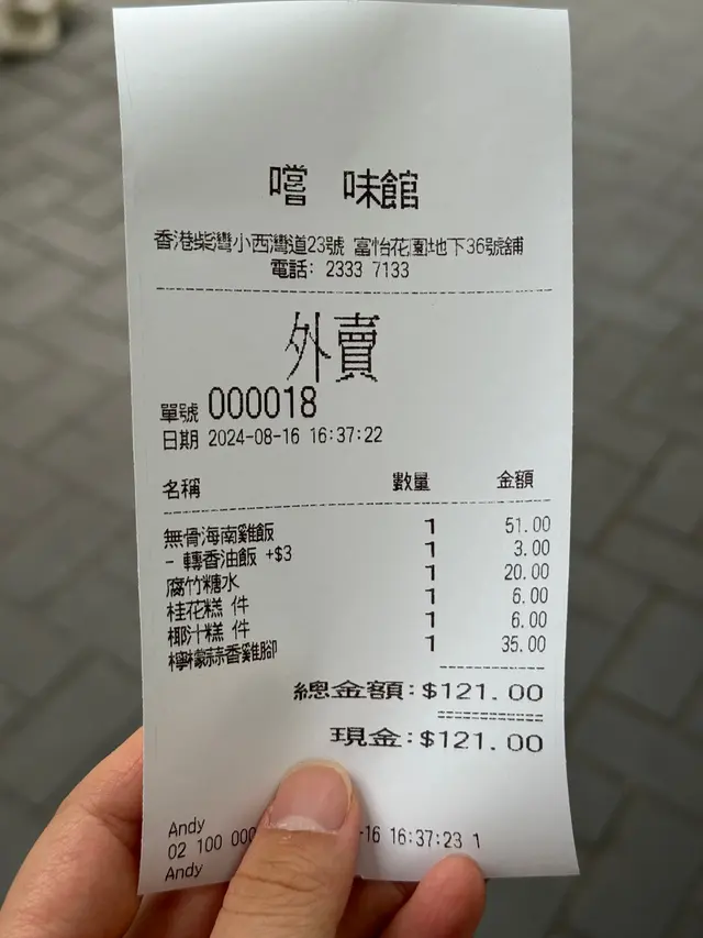 喺柴灣街頭漫無目的行走,忽然發現咗「嚐·味館」,入到店內先知原來係雞肉控天堂!佢哋嘅雞肉料理選擇真係勁豐富—海南雞、醬油雞、香妃雞、口水雞、芝麻蒜香雞……每款都想試!今次我揀咗,配上店家自家熬製嘅例湯同成套飯套餐,食落超有滿足感。豬頸肉香嫩多汁,醃得入味,沙嗲醬唔太重口但夠香,超適合送飯。例湯溫和暖胃,感覺好似屋企媽媽整咁溫馨,唔加味精令人好安心。另外唔可以不提嘅仲有佢哋,大大隻,酒味香淡,唔會嗆喉,做得恰到好處;尤其適合作為小食中和飯菜味道。食完鹹嘢,點少得甜?我哋仲點咗佢哋每日新鮮自家製嘅,甜度剛好,用3.6牛乳做底,滑得來有奶香,食完成個人都有幸福感。整體嚐·味館係一間小店,但選擇多又值得信賴。環境簡潔,最啱攜家帶眷定係返工落班想快手買返餐外賣嘅時候。人均 HK$50–80 就可以食飽飽又暖肚,cp值超高。總結嚟講,如果你同我一樣鍾意雞肉選擇多又唔想食得麻煩,「嚐·味館」絕對值得你食過一次再回頭,簡單、好味、暖胃又暖心。…查看更多