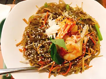 今日收早同男友去千色汇拎番D con,顺便医埋肚。俾呢到d装横吸引左入黎,好森林feel ,几靓!环境清优,坐得都舒适!我地两个人点左3⃣️样野,首先最快黎到既系生牛肉河 ,普普通通冇咩特别,味道偏淡,牛肉唔够入味。之后再黎就系串烧并盘,呢个点任何食物,只需加$65便可,卖相可以,但味道勉强接受,D肉整得唔够淋,咬落去有D韧!最为激气既就系最后黎𠮶碟所谓既大虾蟹肉炒粉丝,1⃣️黎已经等🉐️耐,仲要d虾🉐️两件,所谓既蟹肉仲要得面头少少