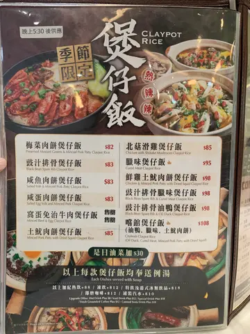 晚市点了一份麻辣水煮牛肉,一份腊味煲仔饭。打单后很快上饮料,二十分钟上例汤、三十四分钟上水煮牛肉、四十六分钟上煲仔饭。煲仔饭制作需时是正常、味道对我这种不怎么懂煲仔饭的人而言不算差,水煮牛肉则是火锅底料味平平无奇,卖相亦无特别之处,若非等这么久还勉强可说能接受。我们大约晚上七时半到店,座始终未坐满,进店时大约有四五位客人在等外卖,而后到菜品上齐前看到同事大概有拿出五六份外卖,想来应该也不是客人太多繁忙所致。店里菜系颇多,花样丰富,但如果不想等太久看来则需点单时问清楚烹饪所需时间。