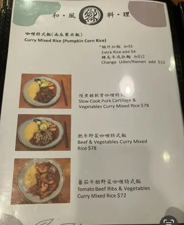The Japanese restaurant is located right next to Exit A1. It's a very convenient location.The seating is spacious and well-lit, with a simple design. The staff are polite, which is a pleasant surprise compared to the comments I read previously.Konpira Rice Set ($72)The set came with a huge bowl of rice, it is more than we needed. Looking back, we probably should've ordered less to avoid wasting food.The Konpira had crispy fried slices of potato, eggplant, and lotus root.They were nicely seasoned, a bit salty, but perfect with all that rice.Slow cooked pork Cartilage & Vegetables curry mixed rice ($78): This hearty dish features two generous pieces of tender pork meat, slow-cooked. The curry is rich, flavorful, and mild. It's good for those who prefer a non-spicy option. A comforting and satisfying meal.…查看更多