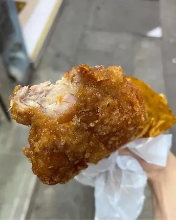 位处土瓜湾后巷嘅小食店,售卖各色煎炸类小食。 另外亦都有卖包同饭不过未试过。出名嘅炸鸡髀已经预先炸好,放喺暖箱度保持温度。 鸡髀表面有一层炸酱,炸得非常香脆。 肉质都算嫩滑,仍然保有肉汁。 腌得好入味,略为偏咸,不过只要加返辣粉就可以解决。 鸡髀唔算非常大只,只可以算中等大细。 整体嚟讲,属于传统小食档类别,虽然以而家嘅食评标准嚟讲会比较输蚀,但系亦有颇高嘅快乐指数。其他小食,例如炸烧卖、炸春卷、咖哩角等等都唔错,即叫即炸,香脆惹味。