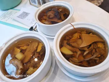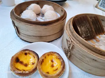 服务人员态度非常之好,一坐低就即刻俾个炖汤我哋,出边有几款嘢系可以任食嘅,包括鲍鱼,海虾,青口,红豆沙同埋药膳猪脚,鲍鱼尺寸唔算细,而且肉质都几腍,海虾都算新鲜冇霉,青口正正常常,红豆沙合格,药膳猪手好味好腍,点心款式其实都唔少嘅,不过我哋都食唔到咁多,全部质素都系中上,我觉得好食嘅系𠮶个雪山叉烧包同埋炒面,呢两款我哋都有再叫,但系第二次嘅质素就争咗少少,另外萝卜糕我哋𠮶个就白雪雪嘅,但我见到有啲人𠮶啲就有浓边嘅,所以佢啲质素系有少少参差嘅,落单啲嘢嚟得都好快,全程都冇漏单,佢所有嘢嘅尺寸都唔算大,细细件比,份量亦唔算多,所以就可以试多几款。
