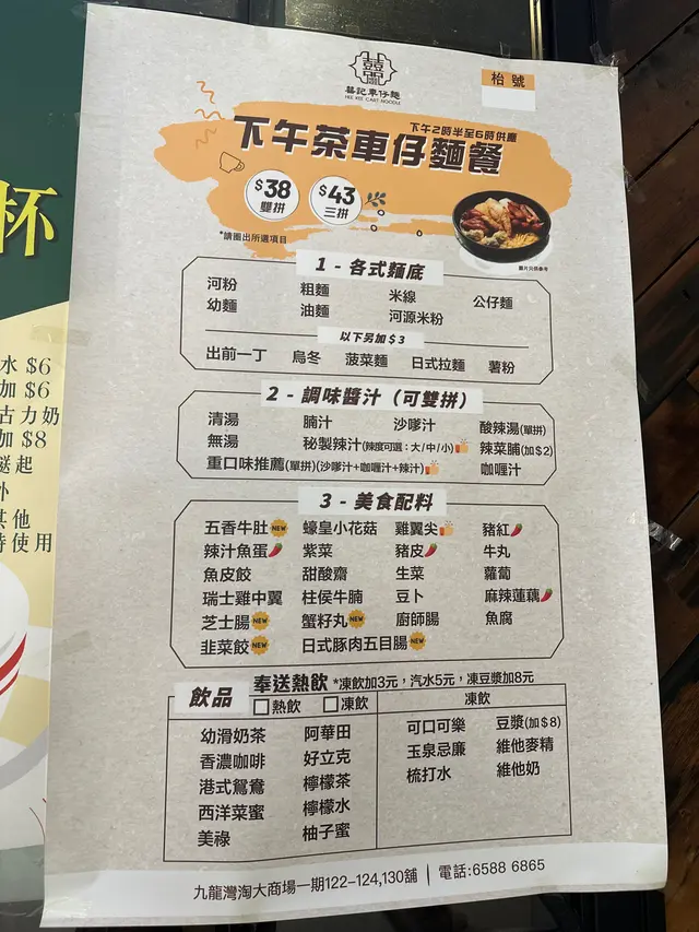 囍記車仔麵 (九龙湾) 网址: https://s.openrice.com/QrLS0xVC800 地址: 香港九龍灣牛頭角道77號淘大商場1期地下G122-124 & 130號舖 电话: +852 65886865