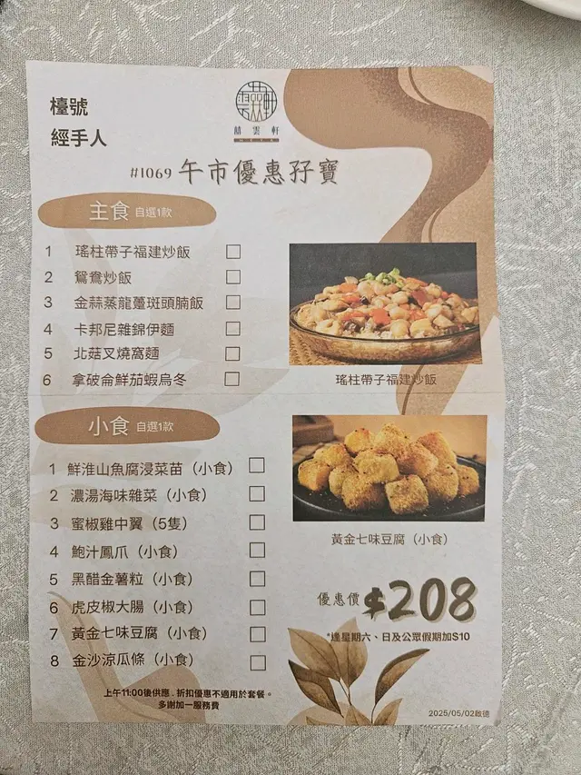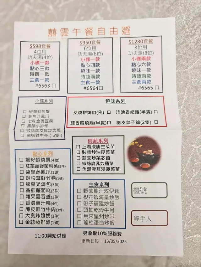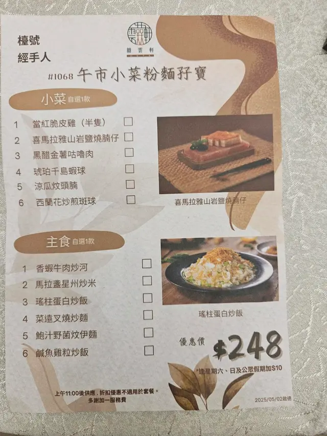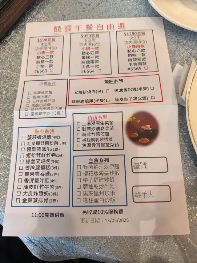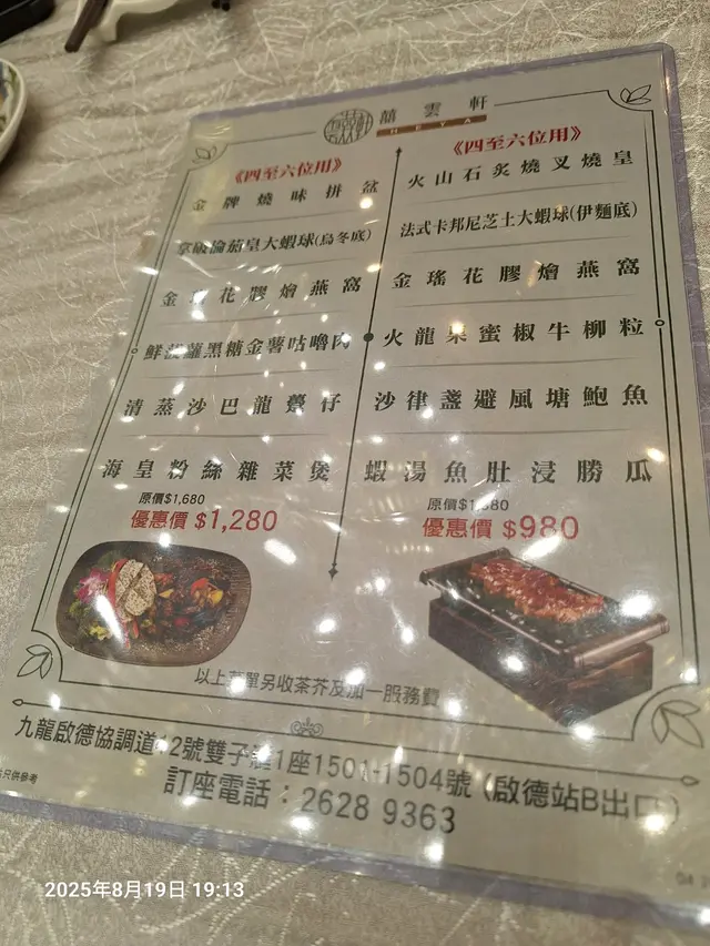 囍雲軒 (雙子匯1期) (九龙城) 网址: https://s.openrice.com/QrLS0teGD00 地址: 香港九龍城啟德協調道12號雙子匯1期崇光啟德店食匯堂15樓 电话: +852 26289363