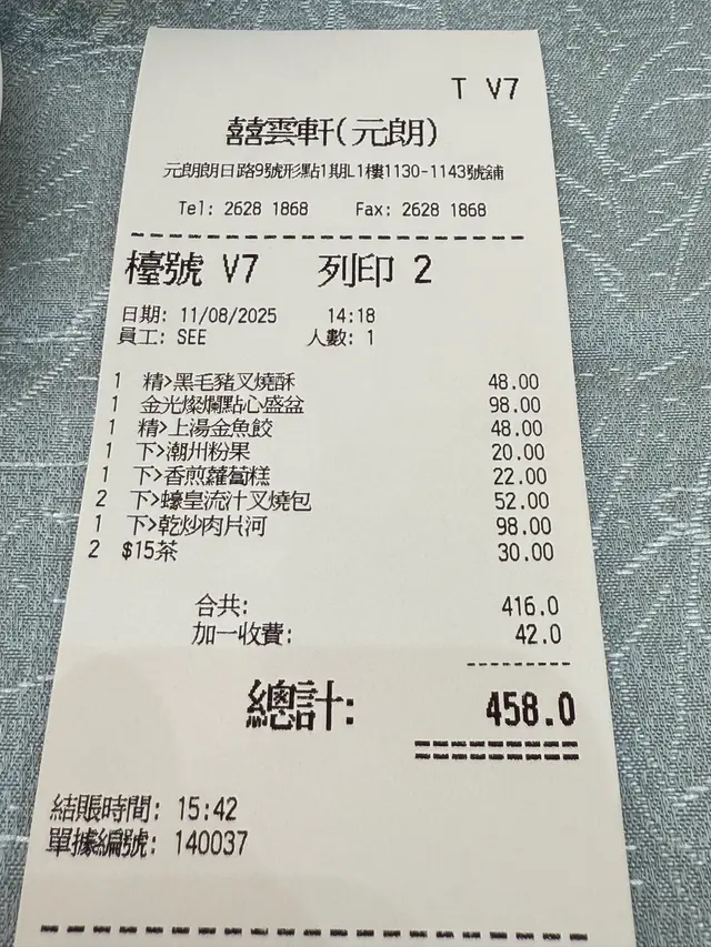 囍雲軒 (元朗) 网址: https://s.openrice.com/QrLS0SamF00 地址: 香港元朗元龍街9號形點 I L1樓1130-1143號舖 电话: +852 26281868