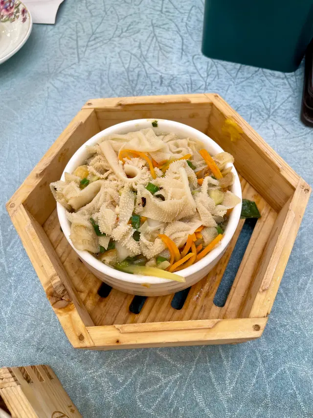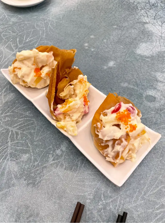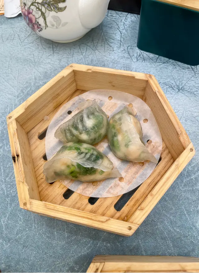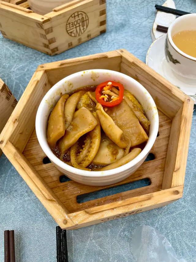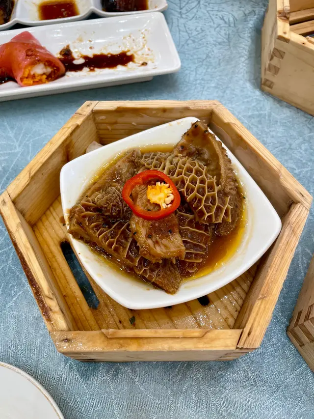 開了新酒樓,當然約三五知己飲茶聊天💬,我們飲平日下午茶,有價錢相宜的點心(14:00後入座計),就算叫正價點心,每款都會比早、午茶市平2-3元。酒樓照明光亮,但枱之間有點近👇雜果雲吞盞$26,上次吃大讚,脆卜卜,賣相又好,今次就失望🙁,某一兩件炸得過火,脆卜卜感及賣相也遜色。下次會再叫,給這款創意點心一個機會🙂👇醬皇金錢肚$43,質感剛好,每塊金錢肚都不會蘸上太多的醬,還有少少黑椒味,整體不錯😋👇海皇櫻花蝦煎薄撑$28,不過不失,每塊薄片,圓邊有少許微脆👇紅菜頭野菌餃26,皮軟糯,每隻飽滿,餡料豐富,有不同的菌類、紅蘿蔔條🥕、芫荽🌿,好味👍👇薑蔥牛柏葉$33,質感和味道OK,切得算幼身👇脆皮鮮蝦紅米腸$43,雖然是脆的,但大家都吃得出有點油益味👇咖喱蒸土魷$33,有咖喱味但不太辣👇鮮蝦菜苗餃$28,餃皮剔透,蝦肉爽,菜苗鮮👇豉汁醬皇蒸鳳爪$28,正常👇點心紙…查看更多