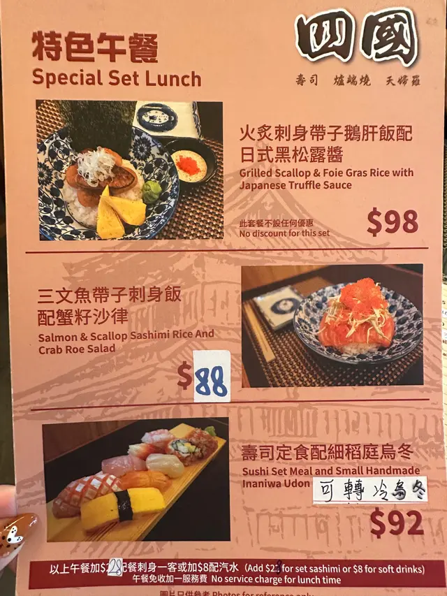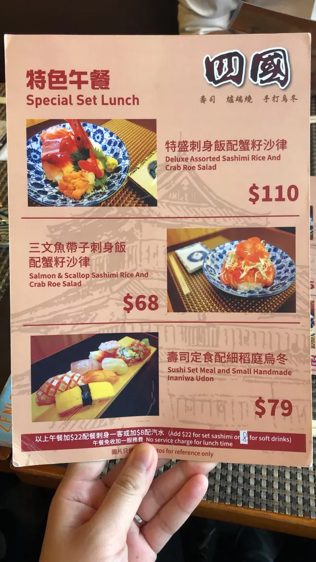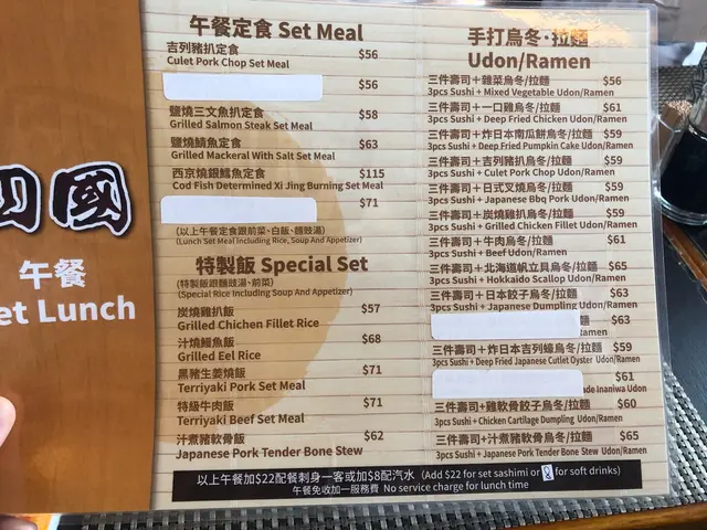 果日Weekend,本身就唔係想食呢間,原本想食果間餐廳無位就喺附近行,門口見呢度Menu不錯就入去喇! 成個樓面得一個男人Serve,飲食業艱難 人手不足都會體諒下。有時倒轉諗, 好感恩佢地仲有開門比我地有得食添! 我嗌左3道壽司+炭燒雞扒湯烏冬。整體味道唔錯,正正常常,份量絕對夠一個女仔食。烏冬只係普通烏冬,雞扒都幾好食,略嫌醬汁過多。另外,3道壽司都意外地好食。 星期日 Lunch Set $68 又飽肚 性價比算高了。朋友嗌左鰻魚飯,他評價也是挺高 抵食!打呢篇野之前,才得知過往不少評價談及一名餐廳女職員服務態度。就我當日所見同所聽, 果個女職員已沒再出現。而當日果個男人雖然忙,態度仍然好好,好落力服務客人, 所以是次體驗好好,一定會再黎幫襯
