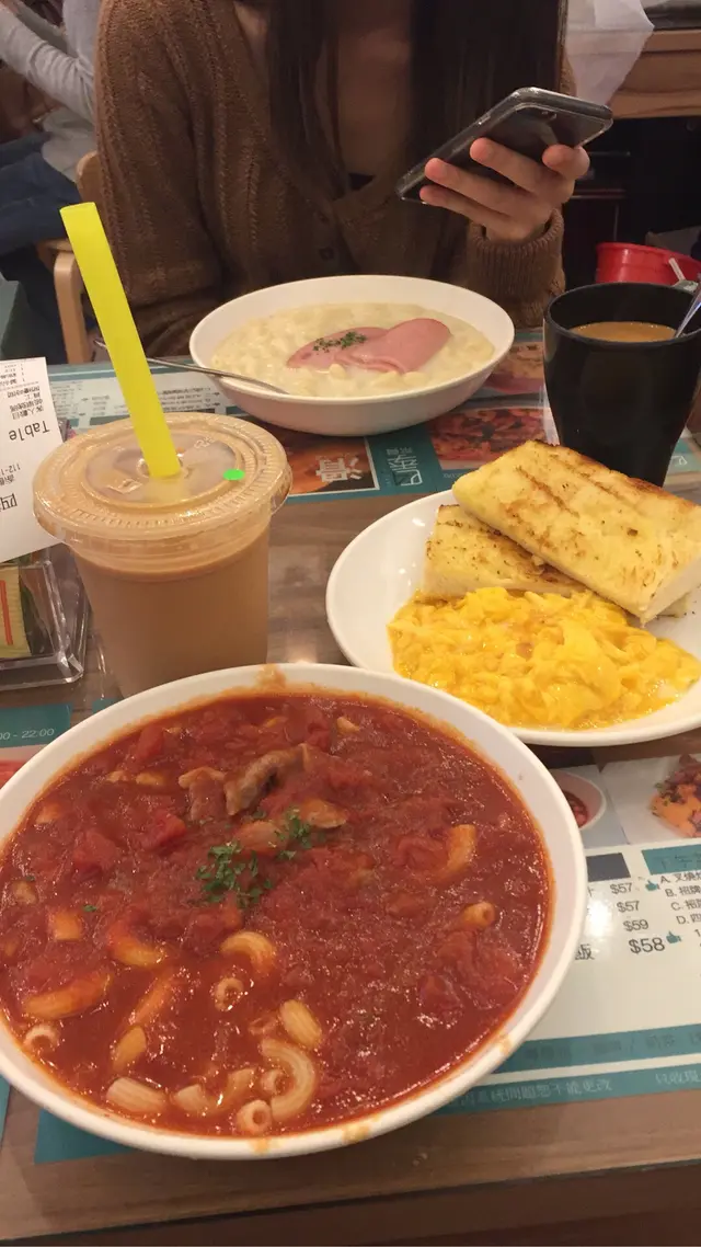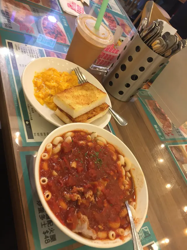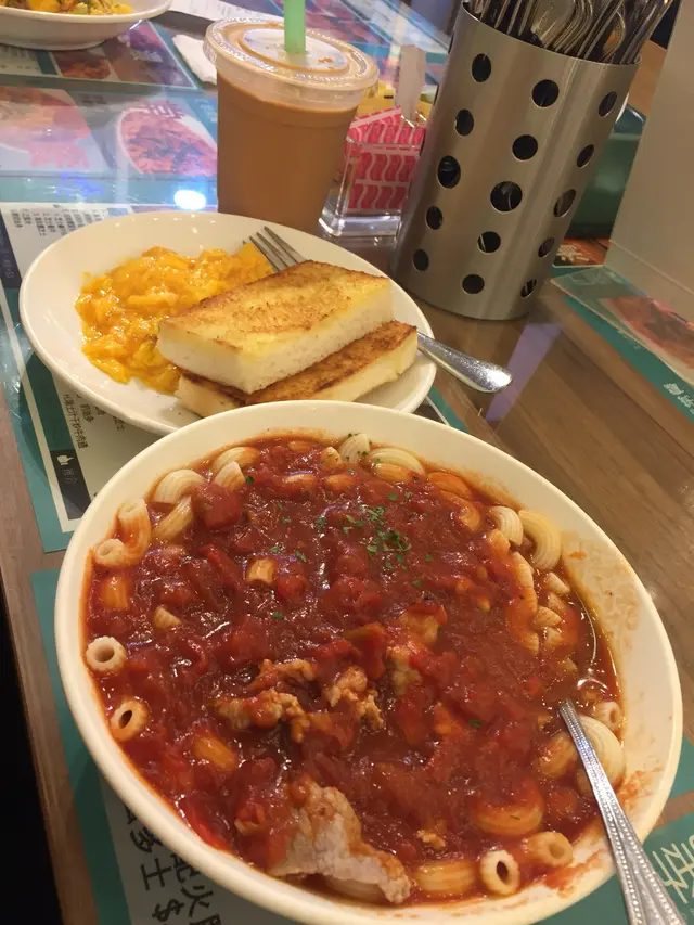 Noodle with Beef in Tomato Soup, Scrambled Egg Toast