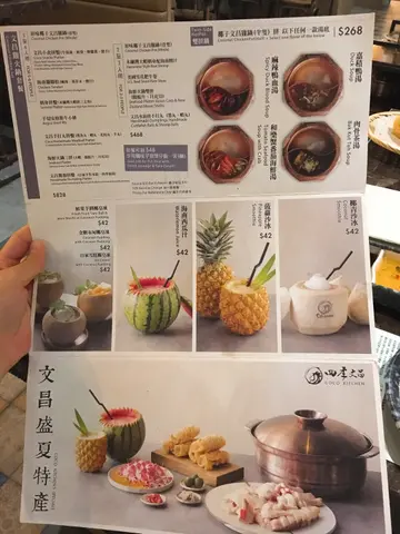 忙左咁耐,最近终于有时间整理下啲食评😌前排有阵子好兴食椰子鸡锅,冇时间上大陆食,于是有日就同屋企人近近地试咗尖沙咀嘅四季文昌~试左椰子鸡锅,汤底系用新鲜既椰子水,店员系我地面前即场倒入锅入面,再加入鸡块,盖上盖,有个计时漏斗计住。由于汤底并唔系一般既清水,而系新鲜椰子水,所以成个锅系有超香既椰子味,而且超清甜,我忍唔住未食野就饮左两碗😋😋😋安格斯牛小排,肥牛色泽好好,雪花好靓😍😍😍唔洗我讲净系睇图都知好食,嫩口又香牛味👍🏻👍🏻👍🏻虽然偏贵,但对得起倾钱。玫瑰黑豚腩片,我唔系识好识食猪肉,对我只只猪肉食落既味都一样😂不过依个值得赞下既系佢摆盘好靓,平平无奇嘅猪肉片可以折成玫瑰花嘅样,几有心思。食物方面虽然价钱偏高,但质素几好,整体都几好食👍🏻饮品方面,屋企人个个都叫咗个椰青,而我就试吓啲特别啲嘅嘢,试左个四季魔法梳打,不过唔系好岩我口味😅下次都系饮返椰青最稳阵😂…查看更多