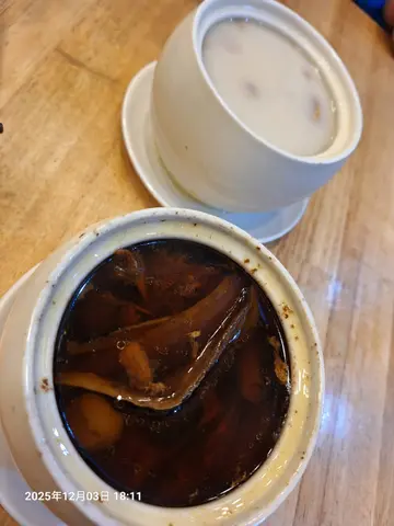 我地见又都想饮下汤就入去试下😜估唔到啲汤又真系几好饮㖞😬真材实料同埋真系无味精饮完唔会有颈渴感觉🤤难怪咁多人啦!川芎白芷天麻鱼头汤好大壶.真材实料好足.鱼头焞到连骨都可以食饮完好好训.跟餐减十蚊都抵饮醉鸡菜饭、朋友觉得可以咸少少.试左一旧鸡肉嫩滑带酒香龙趸荷叶笼仔蒸饭好香荷叶及蒜茸味.龙趸新鲜好食.搭配菜饭感觉好健康环境:小店坐位比较迫.但够光猛干净服务:正常下单.感觉友善