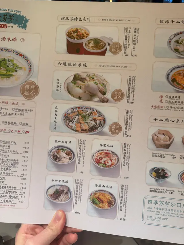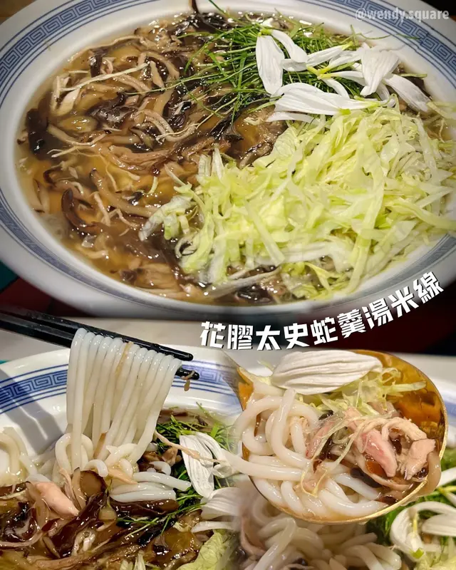 -四季芬芳 🐍四季皆靚湯 米線薈芬芳✨相信大家對傳統百年老字號「蛇王芬」都唔陌生最近仲推出左年輕新派粵菜副線— 以創新手法重新演繹養生米線 主打六款匠心熬製的靚湯米線 配搭多款特色港式小食 款款既有熟悉滋味又有創意 仲幾好味添 聽講六款招牌湯底都係嚴選產地直送食材 經6小時慢火熬煮 將所有精華完全釋放於每一碗米線中餐廳招牌係由著名食家蔡瀾先生提字 裝潢糅合懷舊港式紅綠色元素同現代潮流 細節見心思🌟當日有幸見到蛇王芬第四代傳人 Gigi 駐店唔傾計都唔知道原來不少人以為「食蛇好燥熱」既迷思 ——其實蛇肉性平,非但不燥熱,更具營養及養顏功效係四季都可以食 所以其實唔洗等到入秋都可以食蛇的🦪醬油漬鮑魚 ($39)鮑魚尺寸極大 肉質軟腍帶有天然鮮甜以鹹甜適中既醬油慢慢醃製 索晒精華 入口鮮香濃郁🦪醬油漬蠔 ($39)係老闆娘高度推薦 — 手掌咁大隻生蠔 入口鮮嫩豐盈醬油漬令蠔既海水鮮味更突出 鹹香與蠔的奶香互相提升🥢自選靚湯米線 ($79)自選:白濃雞湯、微辣、紅薯粉、手撕雞肉、牛柏葉、西班牙叉燒白濃雞湯湯色乳白 係真。燉湯 經長時間燉煮至湯頭清徹 就算飲晒成碗湯都唔覺得口渴 飲落溫潤甘甜 濃郁唔油膩薯粉掛晒湯汁;手撕雞肉嫩滑;牛柏葉爽脆;叉燒帶微微炭香;無論係麵線定係餸菜既份量都好有誠意 好飽!🐍花膠太史蛇羹 ($109)祖傳太史蛇羮秘訣 堅持人手將蛇去骨挑筋、撕成肉絲今次係人生中第一次食蛇羹 原來真係幾似食嫩滑版既手撕雞碗仔翅咁 仲有爽脆木耳絲、雞絲等材料 仲有冬菇同薑絲提味 入口絲絲分明 鮮香層次豐富 湯羹濃稠 食完就明點解百年老店屹立不倒🍚蛇王芬臘味生炒糯米飯 ($39)蛇王芬另一道名菜—糯米飯以中外著名既切肉臘腸同鮮鴨膶腸 油香濃郁得來唔會膩滯 每粒糯米都吸滿臘味油脂 煙韌分明 膶腸鮮嫩香濃 香氣撲鼻🌟🌟🌟🌟🌟🥟鵝肝膶腸小籠包 ($49)好特別 未試過既組合 係意外地無違和味🌟🌟🌟🌟🌟小籠包外皮薄身 一啖食落去係爆晒湯汁 鵝肝既細膩同膶腸既鹹香 香氣濃郁 整體調味都係非常剛好 油香不膩🥟手工麻辣小龍蝦水餃 ($88)除左揀自選靚湯米線時可以揀湯底 食水餃都同樣可以我地揀左鮮蝦濃湯 個人最中意係呢個🌟🌟🌟🌟🌟 水餃皮薄餡靚 麻辣小龍辣肉質爽彈 麻辣味道微辣不嗆配搭濃郁鮮甜蝦湯 辣中帶鮮 會不知不覺地飲晒啲湯🥛椰奶炸龜苓膏 ($49)炸龜苓膏都係第一次食 外層炸至金黃香脆 意想不到同椰奶都夾 入口完全沒有苦澀 食落有啲似黑糖糕既味道 外脆內Q 甜而不膩 有種食邪惡但健康甜品既感覺🤣…查看更多