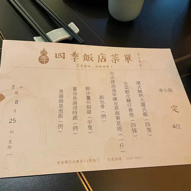 《四季飯店 - 灣仔》最近成日都出沒食中菜,連同班姊妹聚會都揀左一間位於灣仔既私房中菜食飯,記住要預先訂定位咼,當晚入座已經坐滿左人🤨唔預先留位可能真係冇得食㗎🙂雖然話係間私房菜館,但係啲菜式價格都好貼地,好適合一家聚會過嚟食飯💁🏻♀️玫瑰凍鴿 $188用咗玫瑰露浸到入晒味嘅乳鴿,作為前菜冷盤好開胃🥰乳鴿嘅肉經過醃製同埋雪凍,啲肉質爽口又夠味道,帶有少少酒香,呢個時候最適合飲返杯啤酒啦💁🏻♀️明太子冬瓜件 $68食完比較濃味嘅乳鴿,之後呢一道冷盤菜式相對比較清淡,煮軟咗嘅冬瓜件配上特製嘅明太子醬汁,食落有層次而且有青清味蕾嘅作用,又室外熱辣辣嘅環境入到室內再食一道冰涼嘅菜式,十分解暑💁🏻♀️椒鹽汁虎蝦王配煎腸粉 $392佢係一隻隻蝦咁叫的,我地四個叫四隻蝦,其實都真係大大隻肉騰騰的,食一隻都巨飽的,下面仲配左用豉油王煎香過既腸粉,腸粉嗦曬蝦既精華之後十分香脆好味😋💁🏻♀️雞油煎馬友 $418用雞油煎香左條馬友魚,個皮脆脆的,雖然入面有骨,但係都係一條大骨過,食落啖啖肉又香口,可以配埋蔥絲一齊食💁🏻♀️甲皇燉蛋 $208鮮味十足,簡簡單單用左花甲蒸蛋再用豉油提香,上面仲有不少炸洋蔥乾,上枱已經香氣撲鼻,花甲既份量都算多,食落啖啖肉💁🏻♀️玫瑰煙燻雞半隻 $320用左煙燻既方式,個雞皮烘到乾身,好似食緊薯片緊,雞肉食到有木既香氣,同埋個雞用左玫瑰露醃製過,夠曬入味,我地四人一致認同係當晚幾驚艷嘅菜式💁🏻♀️蕃茄魚湯浸時蔬 $148雖然係蕃茄魚湯,但係魚肉嘅味道重過蕃茄嘅味道,個湯有陣豆乳嘅香氣,可能係因為佢有好多腐皮,清清哋嘅一道菜式,啱晒食咗濃味嘢之後清下個味蕾💁🏻♀️四季炒飯 $198喺呢度嘅招牌菜式之一,呢度用嘅米似係珍珠米,食落乾身又帶有軟糯嘅口感,炒得粒粒分明同埋每啖都食到蛋香,面頭再放滿炸雞蛋絲提升口感,怪唔得知好多枱都有叫呢一個炒飯啦…查看更多