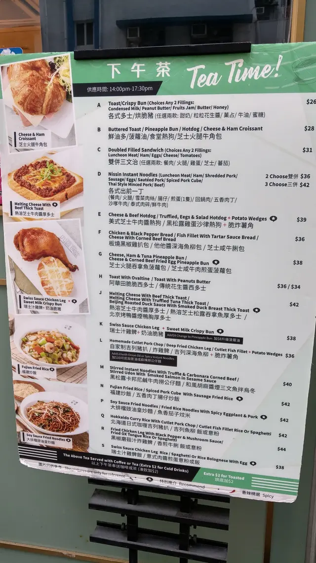 下午茶餐A-C牛油多士改菠蘿油+8, D餐原為火腿芝士牛角包,你地估下轉菠蘿油要加幾錢?8蚊!唔緊要,緊要既係態度!嗰位哥哥大大聲咁話,「都係一樣,要唔要隨得你」!真係覺得佢好有性格,亦即刻知道佢唔係老細,因為老細係唔會咁樣回答顧客嘅!食物嘅味道係幾好,價錢略比一般茶記貴但係坐得舒服,但因為有咗呢位哥哥,我決定唔再返黎!炮台山呢一帶好多特色食肆,選擇係好多嘅。如果稍為有一啲啲唔舒服,亦都唔需要委屈自己!查看更多